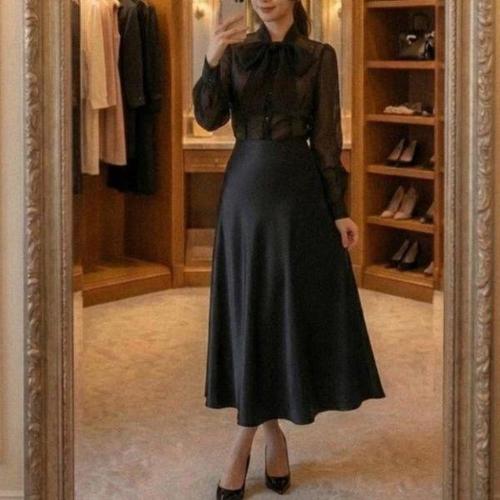 [옷자락]여성용 데일리 사무실 스타일 기모 새틴 롱 스커트