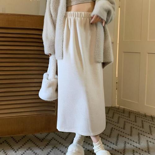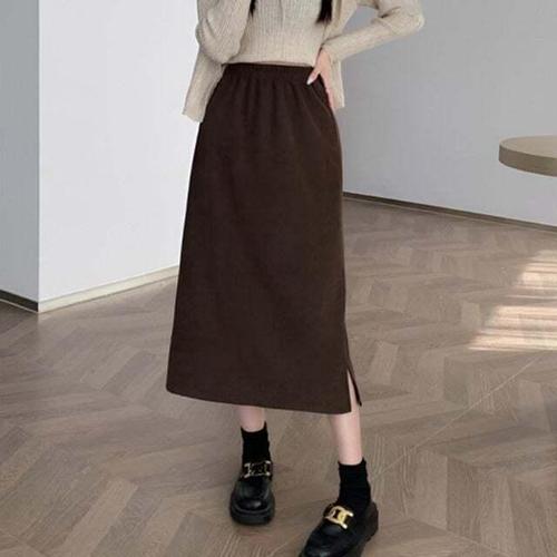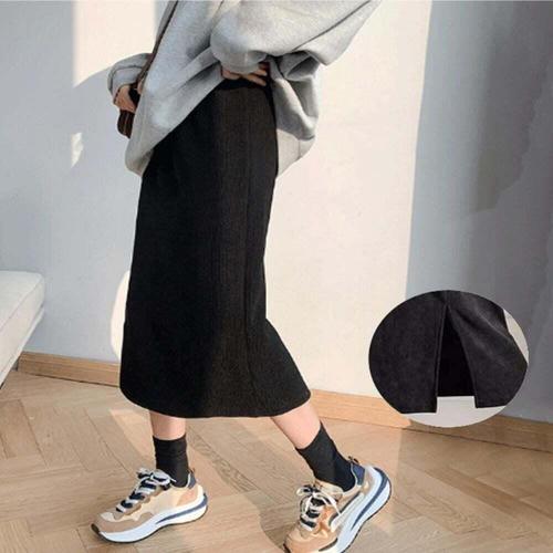 [셀럽하우스]기모 UNOG3324 안감 코듀로이 허리밴딩 뒷트임 포인트 롱스커트