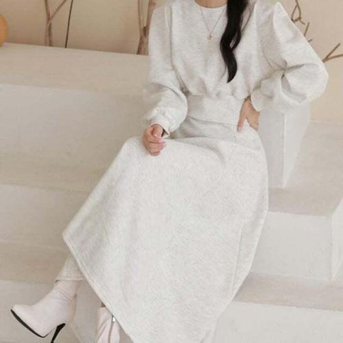 [셀럽하우스]프릴 TVUA6490 기모 밴딩 트렌드 맨투맨 롱스커트 데일리 데일