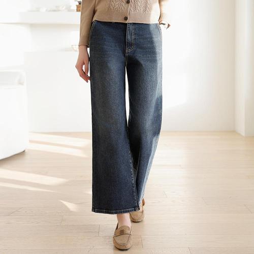 동대문스타일 노멀워싱 스판 밴딩 기모청바지 일자핏 본딩 청바지 여성 겨울바지 HK801(기모)