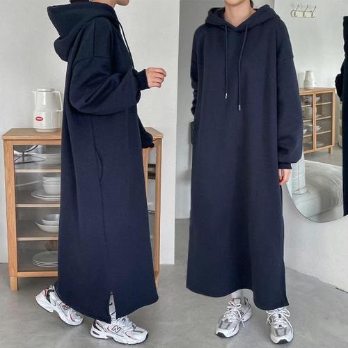 [유야]여성 기모 무지 후드 포켓 긴팔 롱 원피스 -FOP0451- 겨울