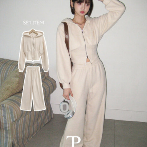 더핑크 / 그렌 후리스 기모 후드 집업 와이드 트레이닝 팬츠