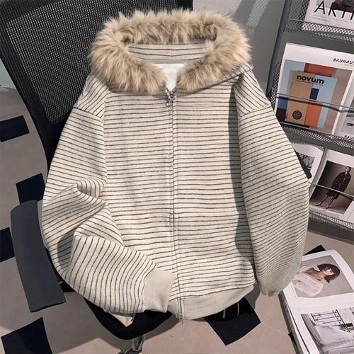 [에이시크]루아 스트라이프 기모 후드 집업 점퍼 C25DJP024