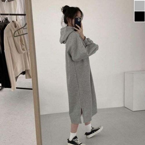 [셀럽하우스]기모 PSXF3520 롱원피스 데일리 후드 맨투맨 보온 등원룩 코디