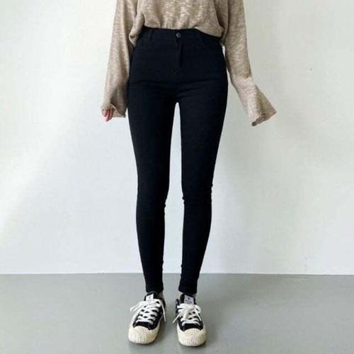 [셀럽하우스]반시아 BJOE4168 기모 윈터 스키니 블랙 따뜻 팬츠 여자 청바지