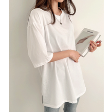 여성 티셔츠 무지 사계절 레이어드 롱 박시 오버핏 루즈핏 반팔 기본 면티