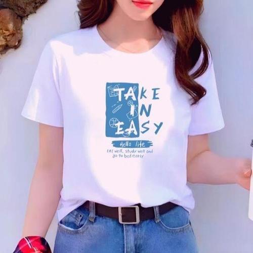 여성 기본 라운드 영문 반팔 라운드 티셔츠 URK-131