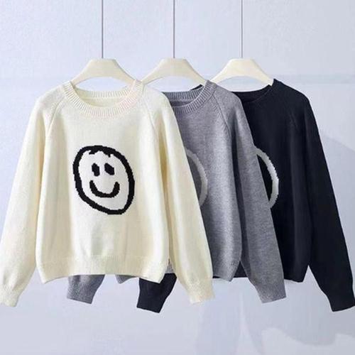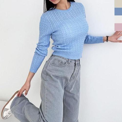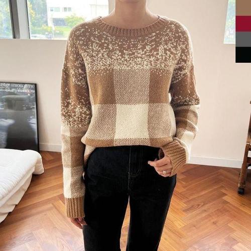 지고다그 여성 가을겨울 배색 라운드넥 니트 스웨터 세련된 긴팔 데일리 오피스룩 HH3179