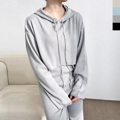 YEON HOME 여성 브이넥 후드 니트 소프트 티셔츠