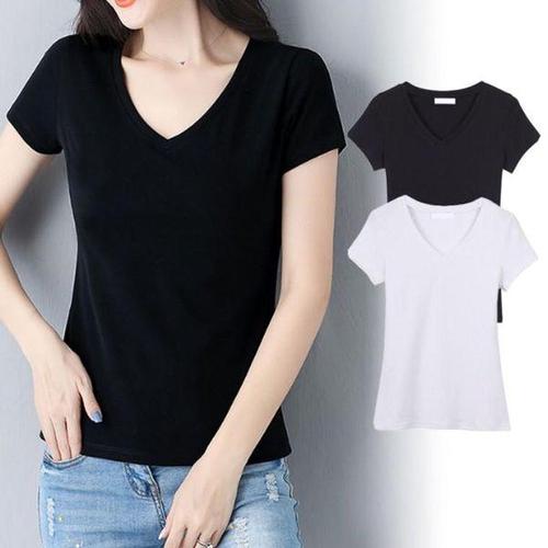 샵앤) 국산 여성 기본 V넥 여름 면 반팔 티셔츠 SC-WSH-T0046