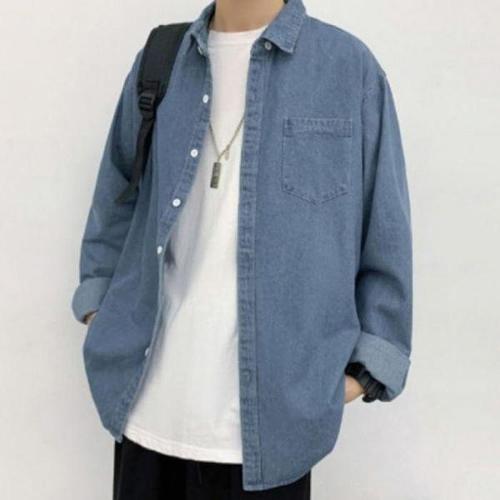 [셀러허브_여성트랜드패션]남방 셔츠 남자 남친룩 청남방 훈남 기본 긴팔 데님