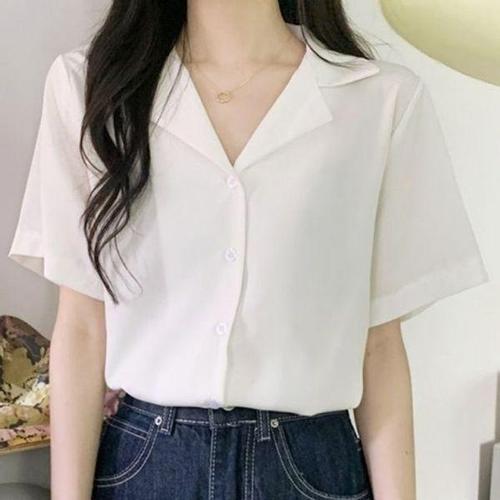 [에이치플러스몰]블라우스 반팔 추천 여자 여성 꾸안꾸 남방 셔츠 기본