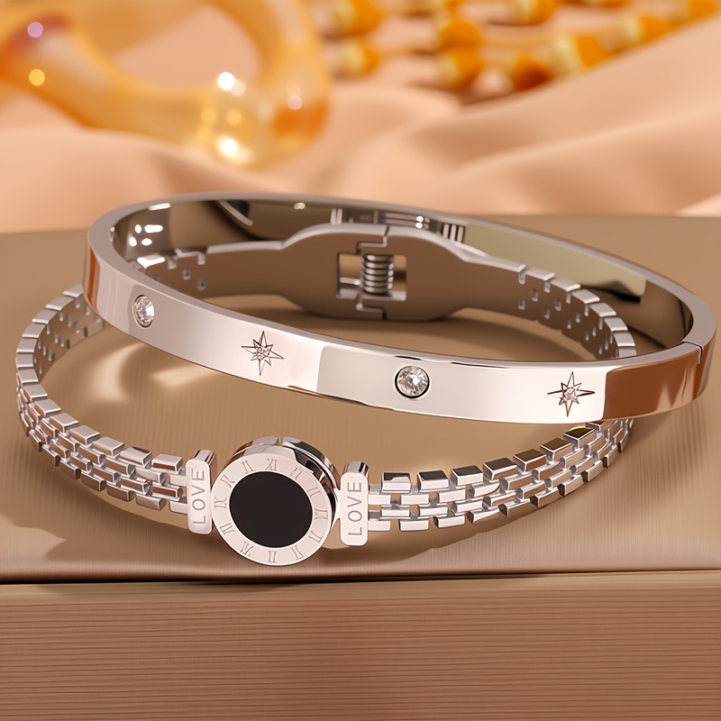 TEMU 2개 세트 스테인리스 스틸 팔찌 - 우아한 메탈 주얼리, 생일/기념일/졸업/독립절 선물 추천, 파티 필수 아이템, 패셔너블 금속 광택, 세련된 스타일의 트렌디 남성 액세서리