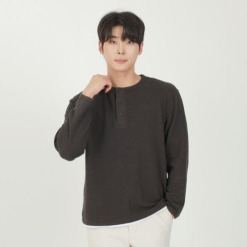 남자 레이어드 티셔츠 긴팔 V넥 티 이너 기모 무지