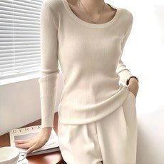 네모엔룩 여성용 라운드골지 슬림핏 긴팔 이너 레이어드 골지 라운드넥 니트 NL