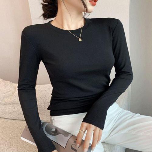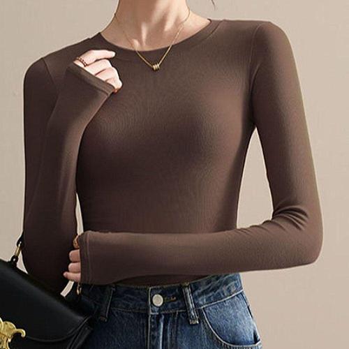 여성 5컬러 심플 무지 보온 라운드넥 긴팔티셔츠 WFL7SUY