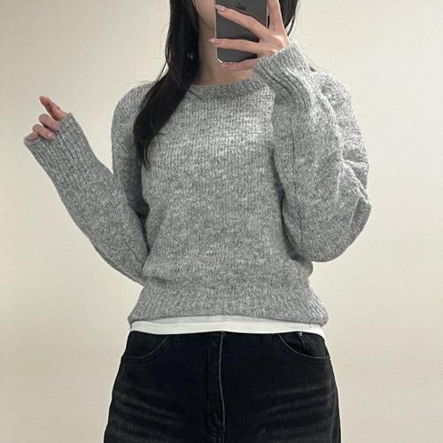 [옷자락] 여자 데일리룩 라운드 긴팔 울스웨터 무지 겨울 니트