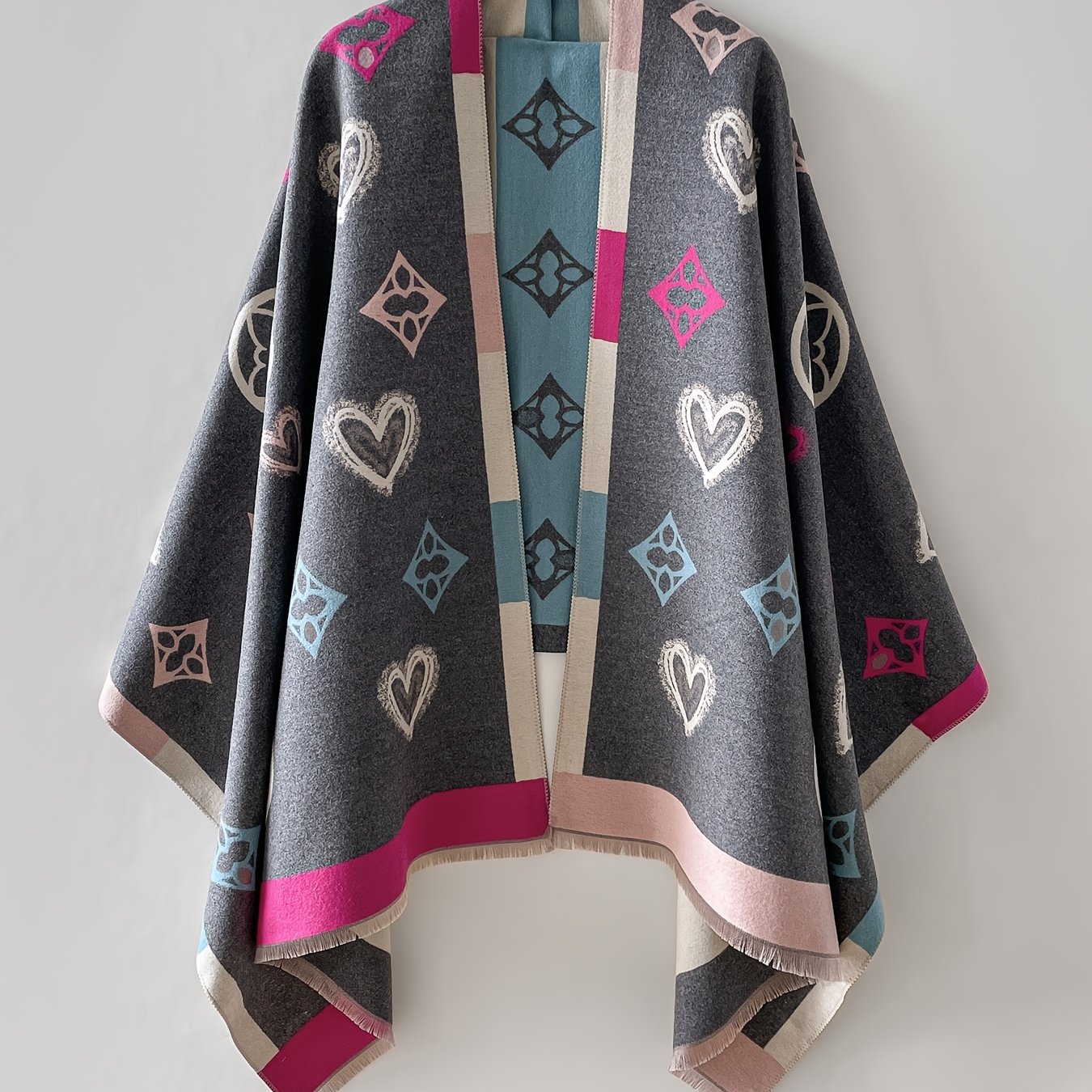 TEMU 플러스 사이즈 - 플러스 사이즈 - 리버스블레이크 투톤 하트 숄, 발렌타인데이에 완벽한 달콤하고 멋진 스타일, 데이트 및 파티에 적합한 따뜻한 액세서리, 또한 일상적인 캐주얼 웨어에 패셔너블합니다.