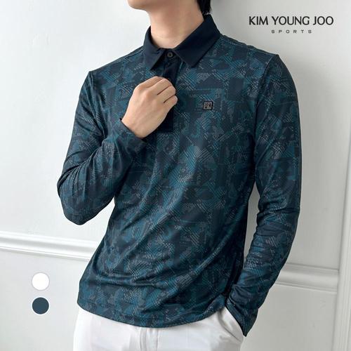 김영주스포츠 남성 스판 자카드 긴팔티셔츠 골프웨어 봄가을 카라티 KRMT3213