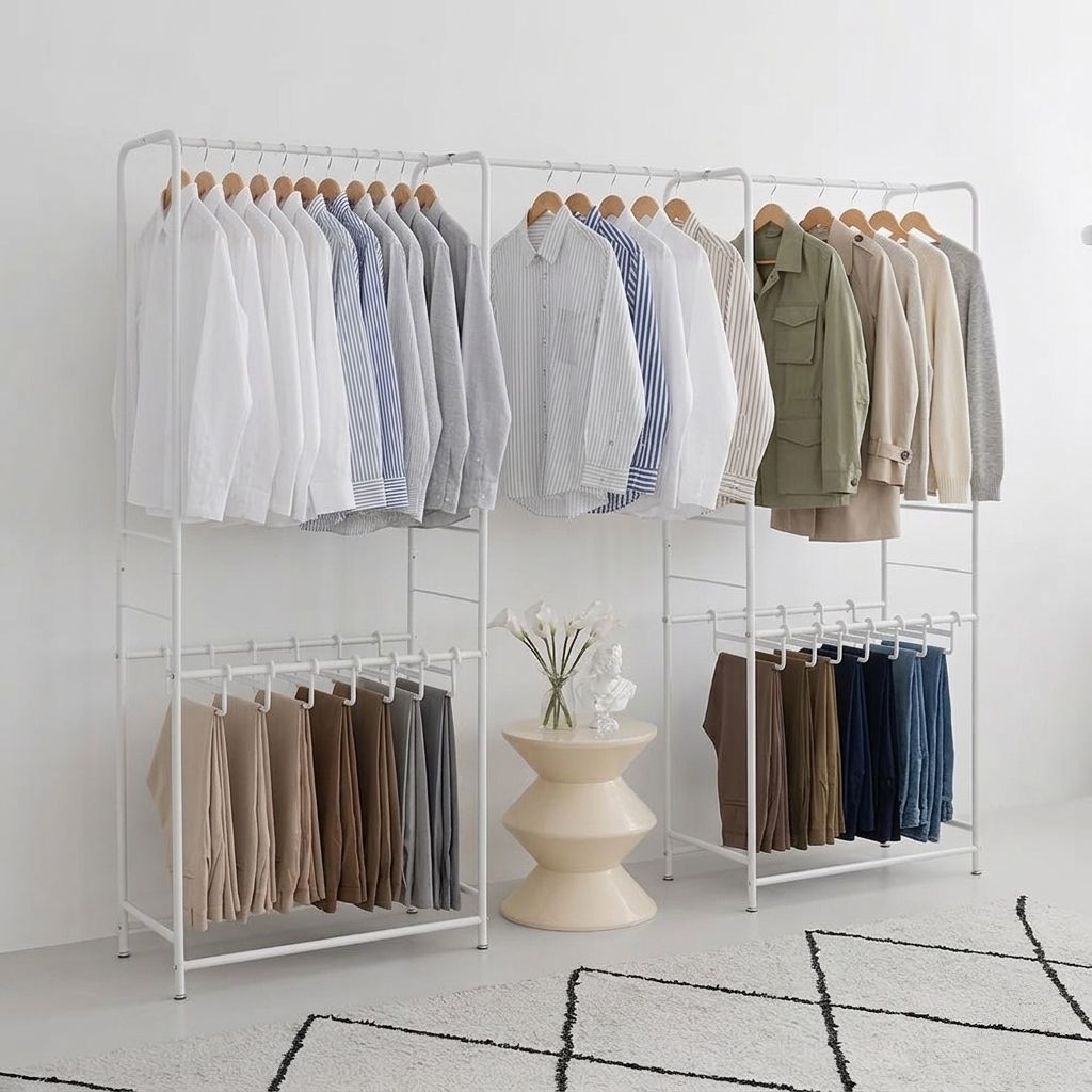 아다만트 2단 튼튼 파이프 외투 튼튼한 행거 무거운옷 이동식 빈티지