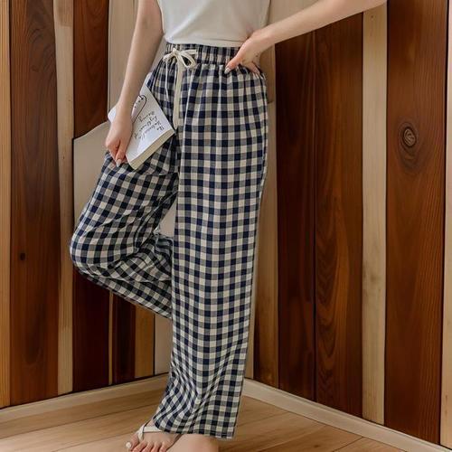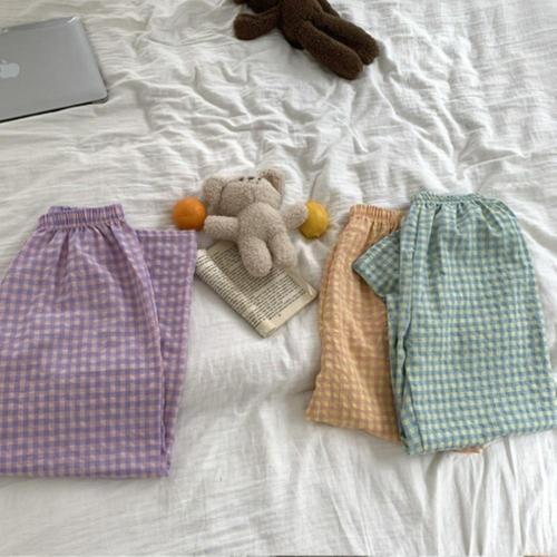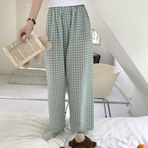 [다잇템]여자 실내복 격자 파자마파티 와이드핏 바지