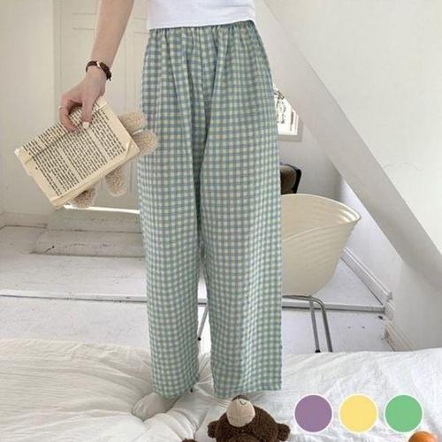 [옷자락]여성 사계절 파자마 패턴 체크 와이드 바지