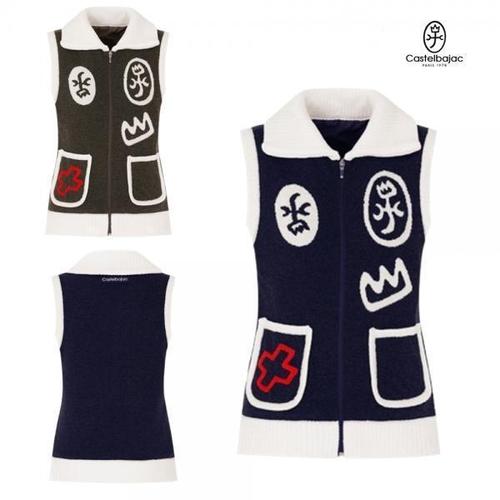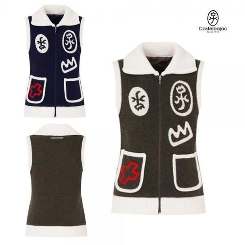 [까스텔바작]까스텔바작 여자 겨울 빅카라 부클원사 겨울 골프 니트 조끼 BGDW-SV702. CA3802949