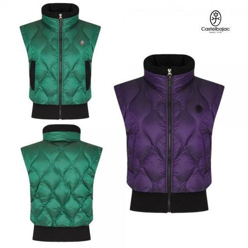[까스텔바작]까스텔바작 골프 여성 넥배색 풀집업 다운 퀄팅 조끼 BGDW-VT701. CA3802957