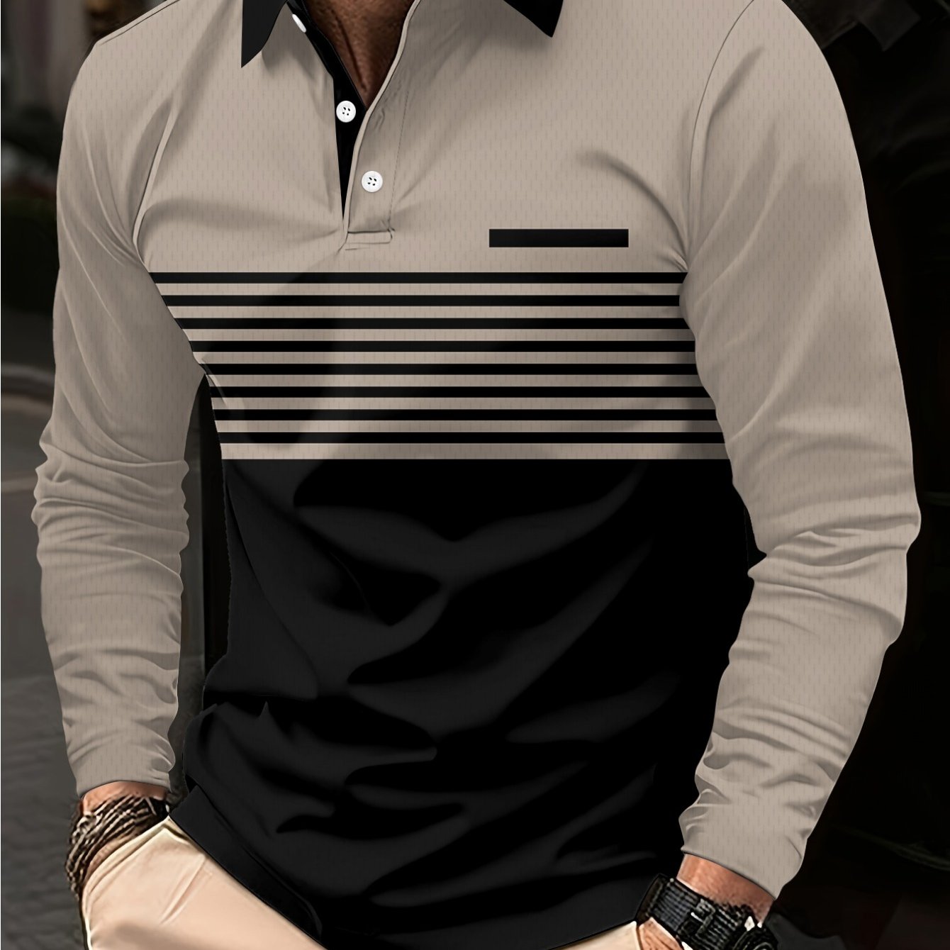 TEMU 남성용 3D 올오버 프린트 긴팔 셔츠 - 버튼 프론트 플라켓 칼라 골프 & 캐주얼 버튼셔츠, 컬러 블록 디자인의 세탁기 사용 가능한 스포츠웨어