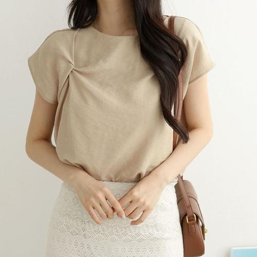 [신상오픈런]여성 꼬임 라운드넥 여름 하객용 린넨 캡소매 블라우스 (39079549)