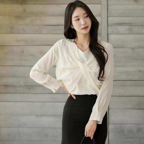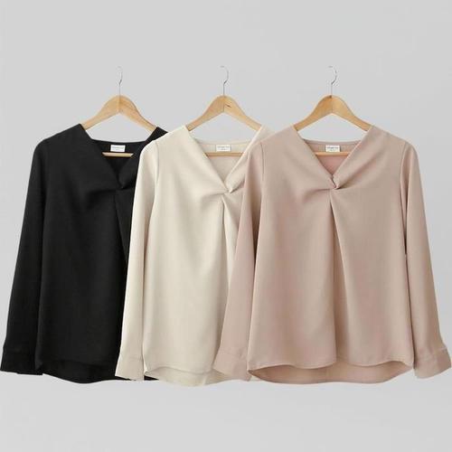 [신상오픈런]여성 기본핏 V넥 꼬임 롱슬리브 오피스룩 블라우스 (41564224)