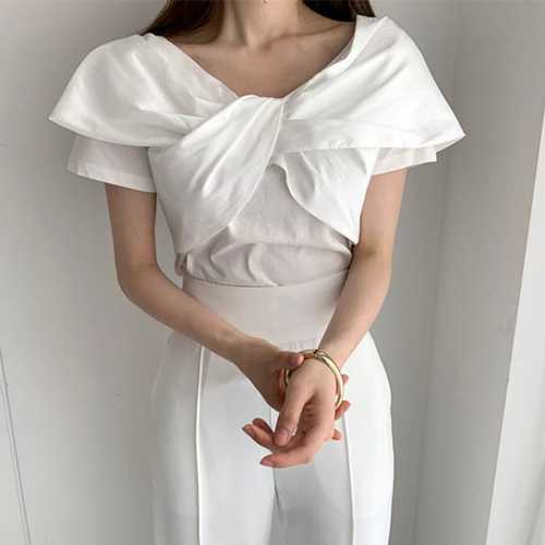 슈팅스타 / 우아한 유니크 꼬임 리본 매듭 반팔 블라우스