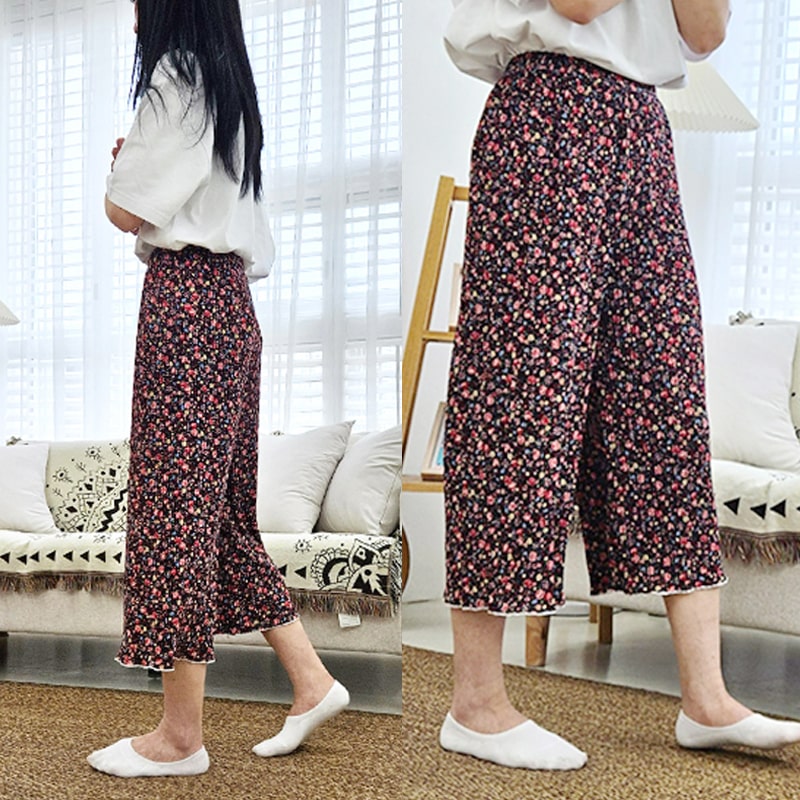 [라일리의류] Rly 1+1 꽃무늬주름바지 8부 플리츠 냉장고 와이드 팬츠