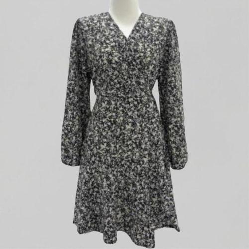 [다잇템]여성 짧은 슬릿 꽃무늬 패턴 랩 원피스