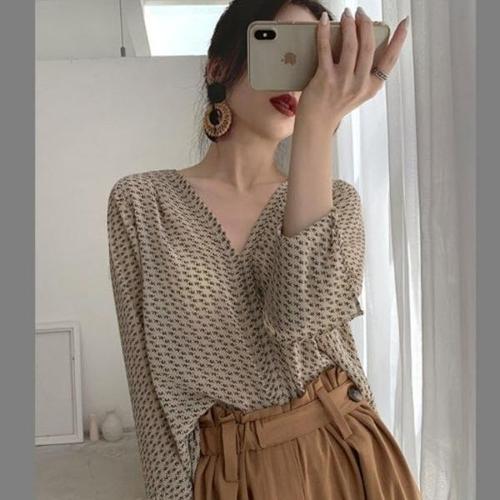 besteffie 봄 가을 중년여성 쉬폰 브이넥 루즈핏 플라워 잔꽃패턴 빅사이즈 엄마옷 롱 여자블라우스 C15