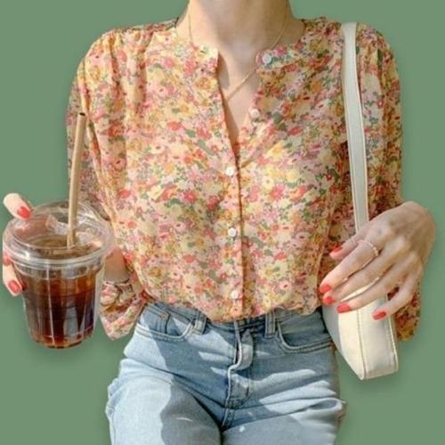 [엄지척]여성 꽃무늬 쉬폰 블라우스 루즈핏 셔츠 봄블라우스_19645164_667501