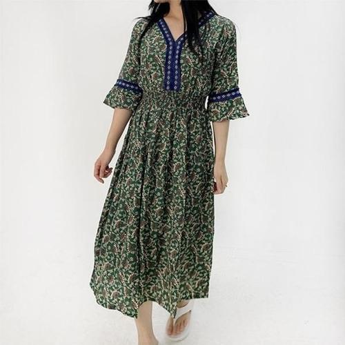 [엄지척]브이넥 롱원피스원피스 꽃패턴 소매 봄원피스 OPC001_19952792_667501