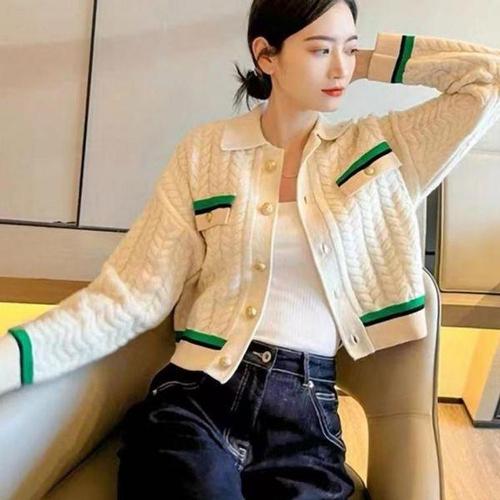 [에이치플러스몰]간절기 고급금장단추 꽈배기짜임 포인트컬러 가디건 가디건 가을 여성 라운드 봄자켓 니..