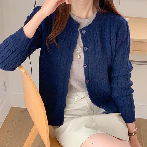 [옷자락] 여자 데일리룩 꽈배기니트 라운드넥 여리핏 가디건