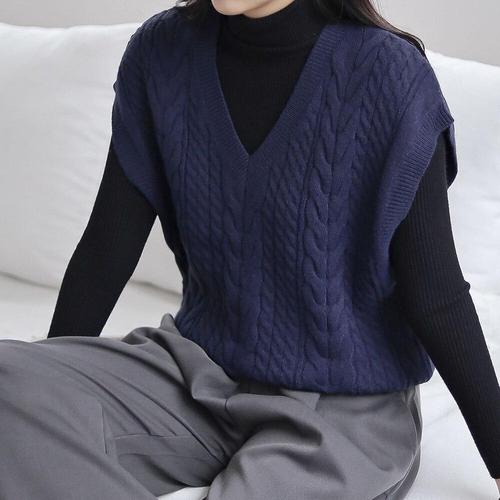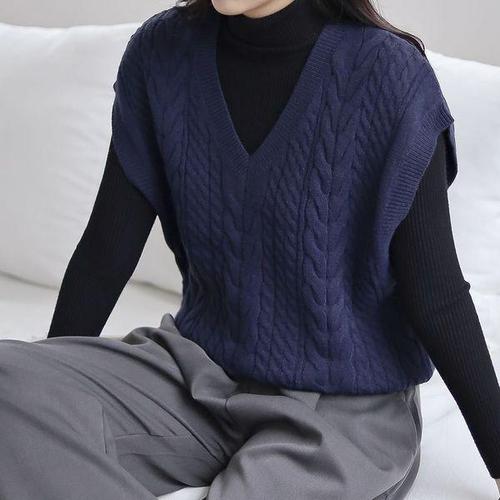 [다잇템]여자 꽈배기 패치 FW 베이직핏 V넥 니트조끼