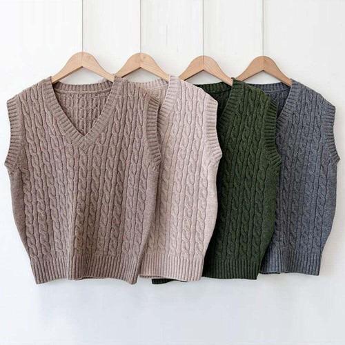 [오너클랜]인기상품 여성 니트 꽈배기 조끼 베스트 캐주얼 V넥 니트조끼 [WFGMGHM_251213]
