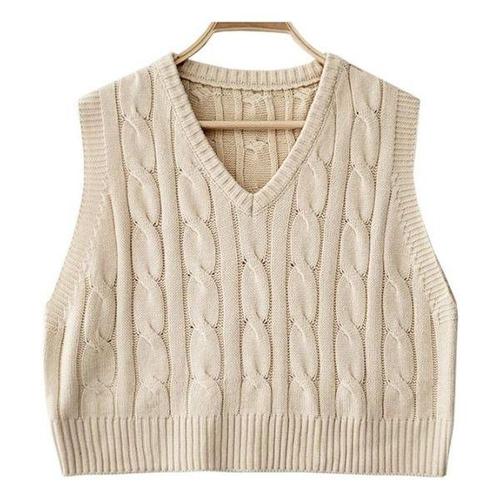 라라홀리 복고풍 옆트임 루즈핏 크롭 꽈배기 니트 조끼