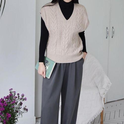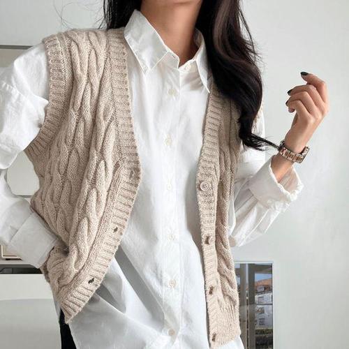 [옷자락]여자 꽈배기 라벨 브이넥 베이직핏 가을 겨울 니트조끼