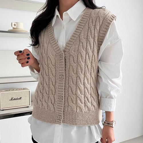[옷자락]여자 알파카 꽈배기 오픈 버튼 브이넥 베이직 니트조끼