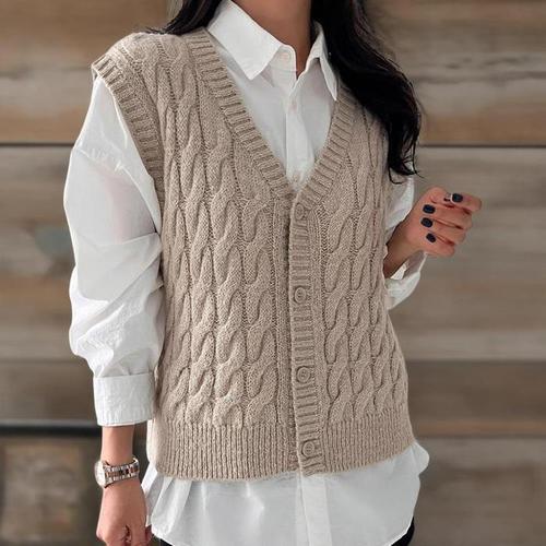 [신상오픈런]여성 알파카 브이넥 버튼 니트 조끼 꽈배기 디자인 (42510236)