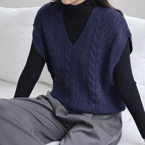 신상 여성 꽈배기 니트 조끼 루즈핏 날씬해 보이는 스타일리시한 베스트 상의