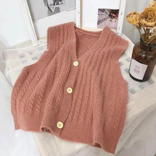 [신상오픈런]여자 알파카 꽈배기 오픈 버튼 브이넥 베이직 니트조끼