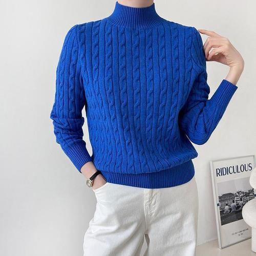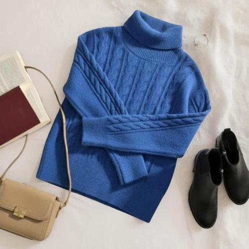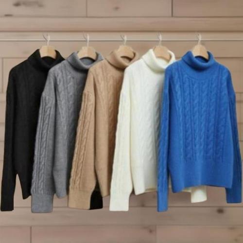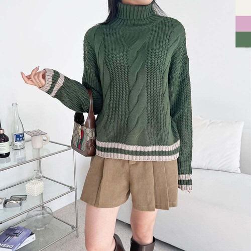 [셀럽하우스]클래식 ACVF0312 꽈배기 패턴 디자인 여자 캐주얼 목폴라 니트