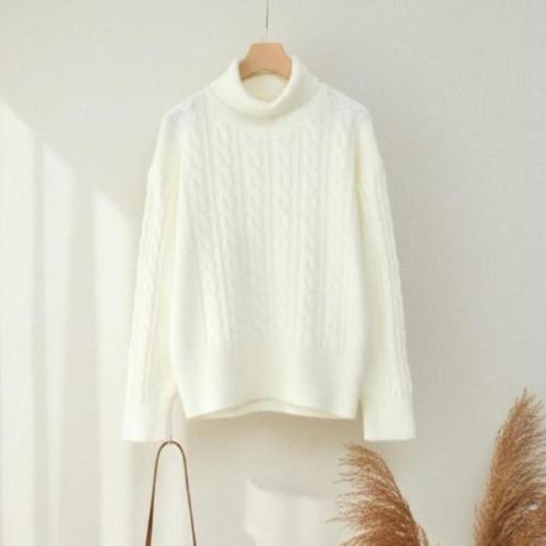 [신상오픈런]여성 오버사이즈 터틀넥 긴팔 니트 꽈배기 디자인 (42613696)