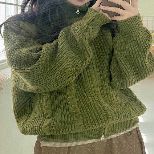 [엘루이즈][엘루이즈] [도톰/고퀄] 퓨링스 하이넥 꽈배기 니트 집업(6color)